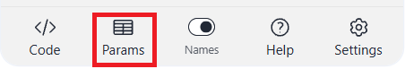 Click the Params button in the bottom toolbar of the side panel. The parameters table will open in the main browser window.